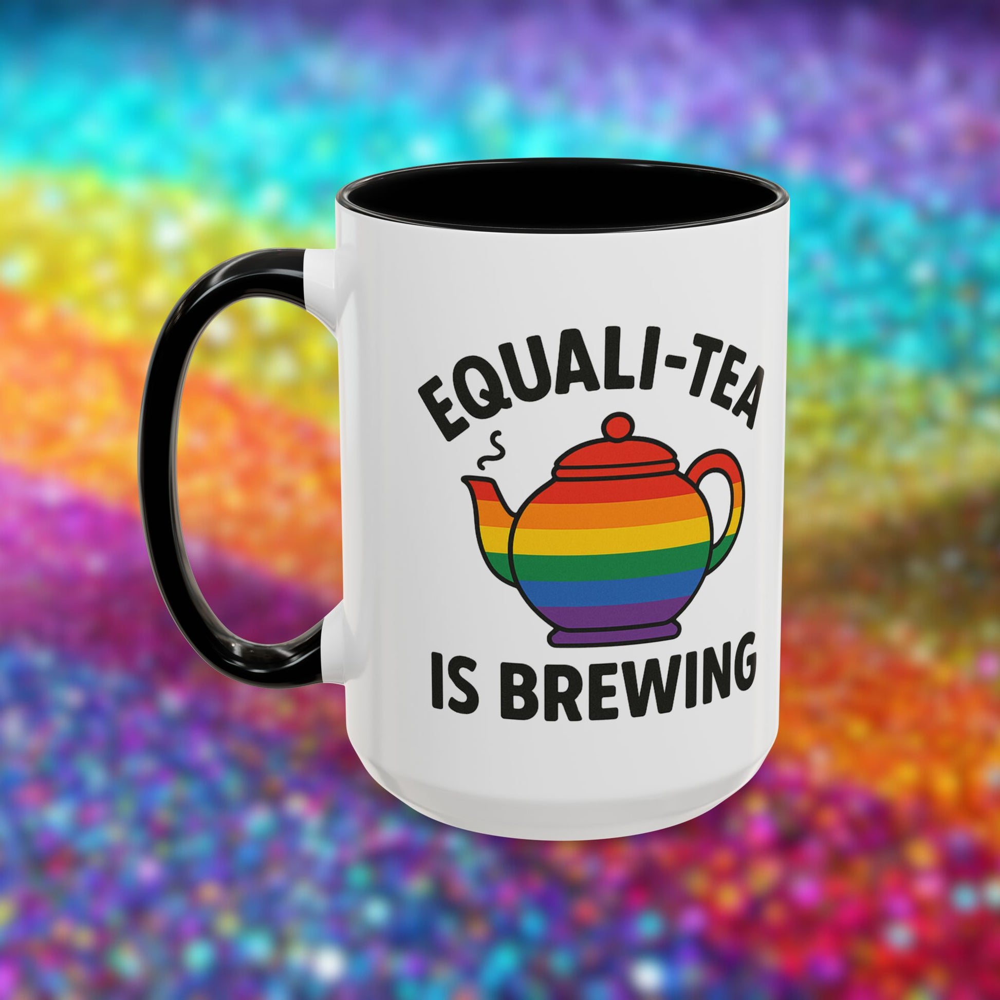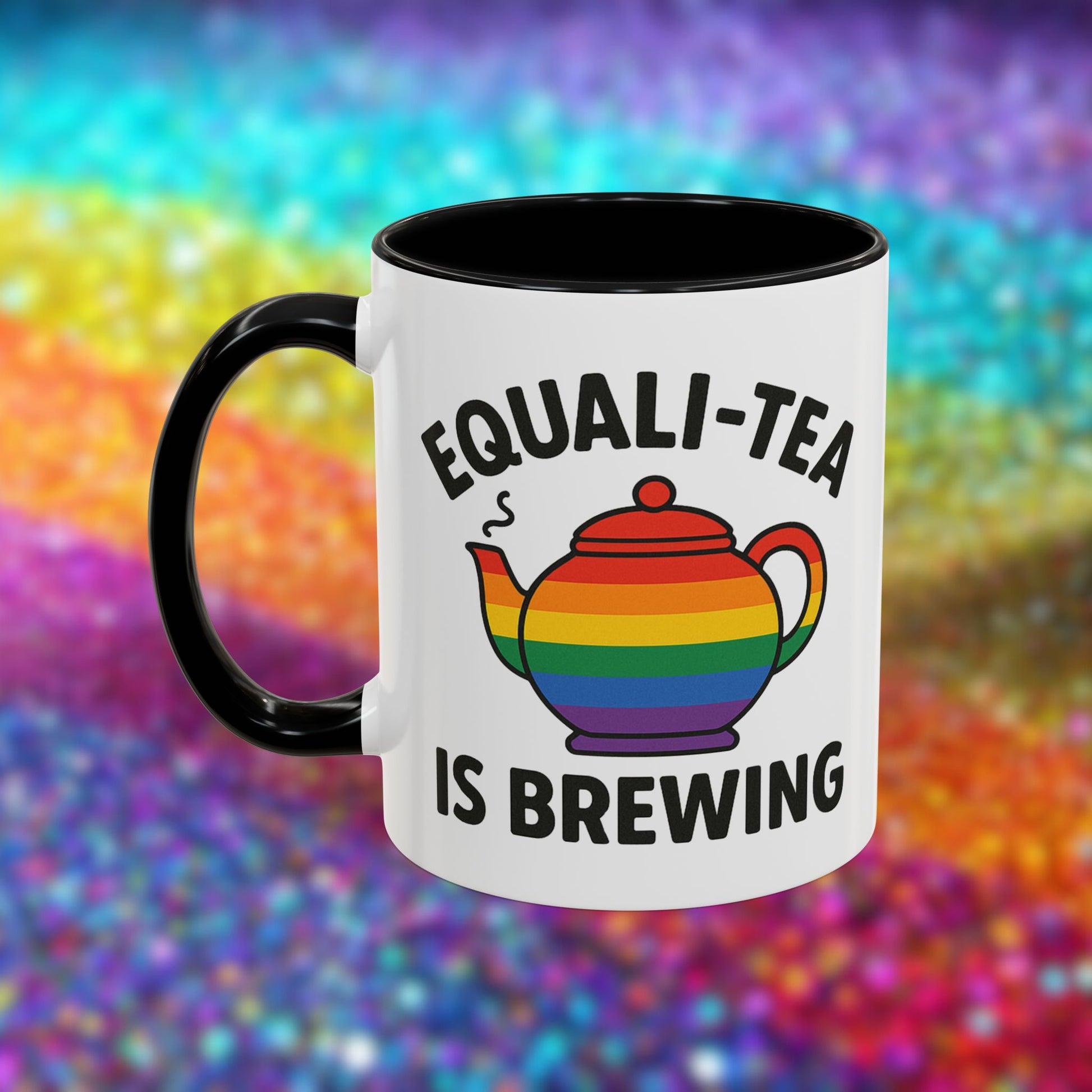 The Equali-tea Is Brewing mug pairs a bright rainbow teapot with a cheeky message that says exactly what needs to be said, without shouting. It is playful, earnest, and quietly powerful, the kind of mug that sparks conversation while you are still waiting for the coffee to kick in.