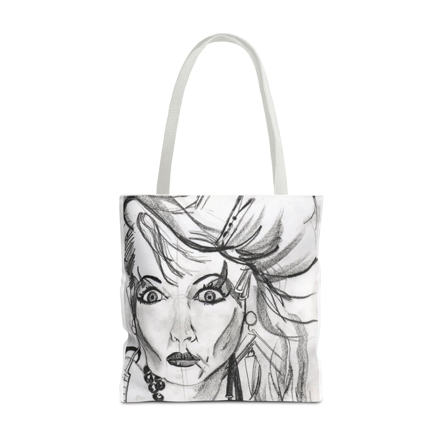 Step out in style and have some fun with our Girls Just Want to Have Totes Fun tote bag! Featuring our hand-drawn, charcoal-illustrated sketch of the one and only Cyndi Lauper, this tote is the perfect way to celebrate your free spirit and bold individuality. Whether you're on the go, at a concert, or simply running errands, this bag adds the perfect touch of iconic flair to any outfit.